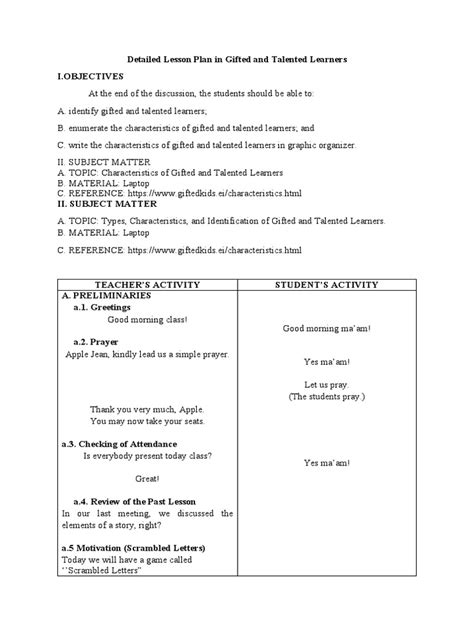 Download GIFTED AND TALENTED FIRST GRADE LESSON PLAN Doc Internet Archive